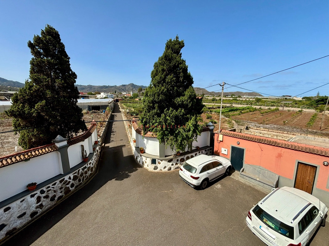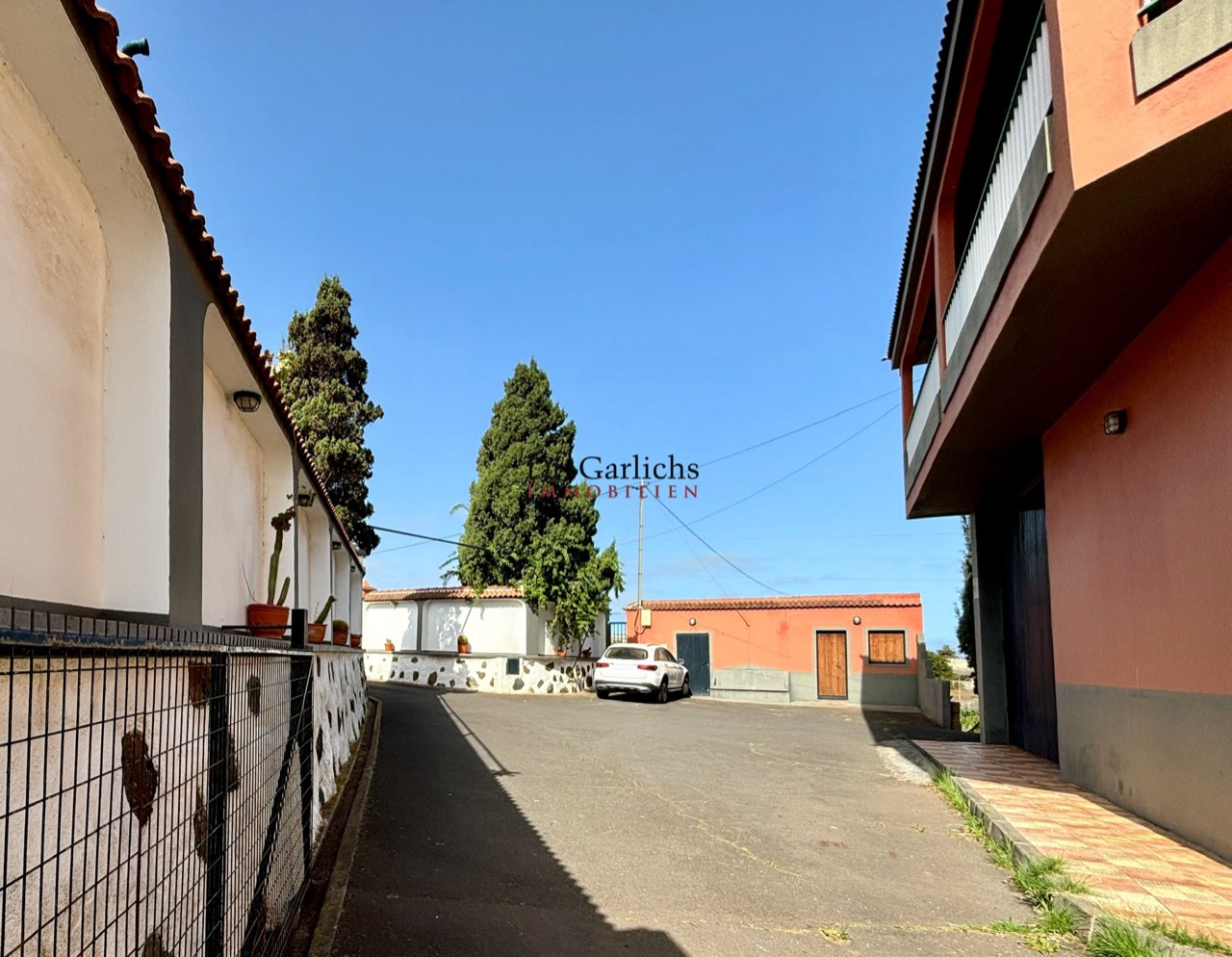 Details: Große Garage sowie Nebengebäude/Werkstatt – Gewächshaus – Großer Wassertank zur Bewässerung – Wohnhaus mit zwei Küchen, Möblierung, Glasfaser Internet und Aufzug – (Dach)Terrasse – Pkw Stellplätze – Wasseranschluss sowohl über die städtische Trinkwasserversorgung als auch über sog. Fincawasser (Wasseraktien-Bezugsrecht von über 1 Mio. Liter pro Monat) – Abwasserentsorgung über eine Sickergrube – Flaches Grundstück – Meerblick – Stadtnahe Lage – Höhe 240 m üNN.