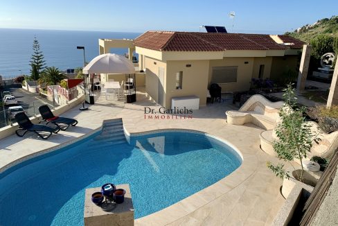 Details: Zwei Gäste-Apartments – Glasfaser Internet – Fotovoltaik Anlage – Elektrische Toreinfahrt – Garage – Diverse Terrassen – Wintergarten – Kamin – Garten mit Sprinkleranlage und Obstbäumen (Avocado, Orangen, Nispeln, etc.) – Begehbarer Kleiderschrank – Hauswirtschaftsraum – Geräteraum im Garten – Städtische Trinkwasserversorgung – Regenwasserzisterne zur Gartenbewässerung – Teideblick – Meerblick – Jährliche Grundsteuer derzeit 786 € – Höhe 420 m üNN.