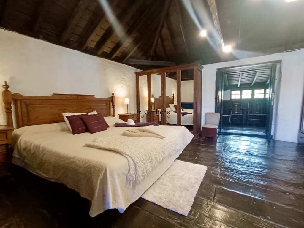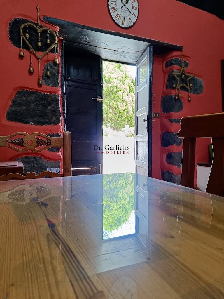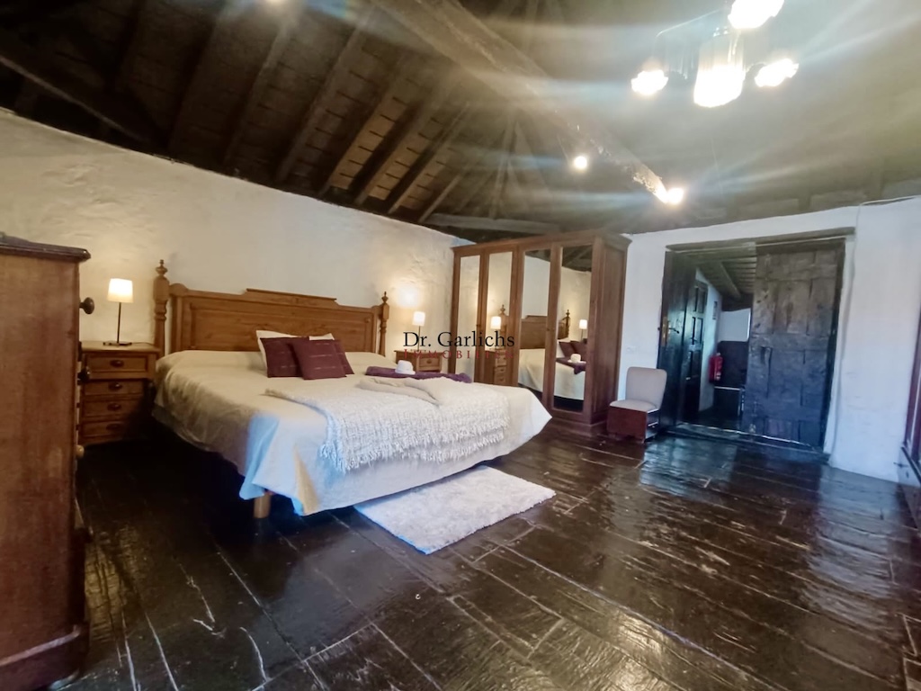 Details: Zwei Bäder, sowie ein Gäste-WC im Außenbereich des Grillplatzes – Voll ausgestattete, funktionale Küche mit traditionellem Charme – Zwei Originalkamine – Kanarischer Innenhof / Patio – Holzböden aus Massivholz – Großer Garten mit einheimischen Pflanzen und Teehäuschen – Waschraum – Traditionelle Bauweise mit hohen Decken, dicken Wände, Holzbalken und restaurierten Originalelementen – Höhe 520 m üNN.