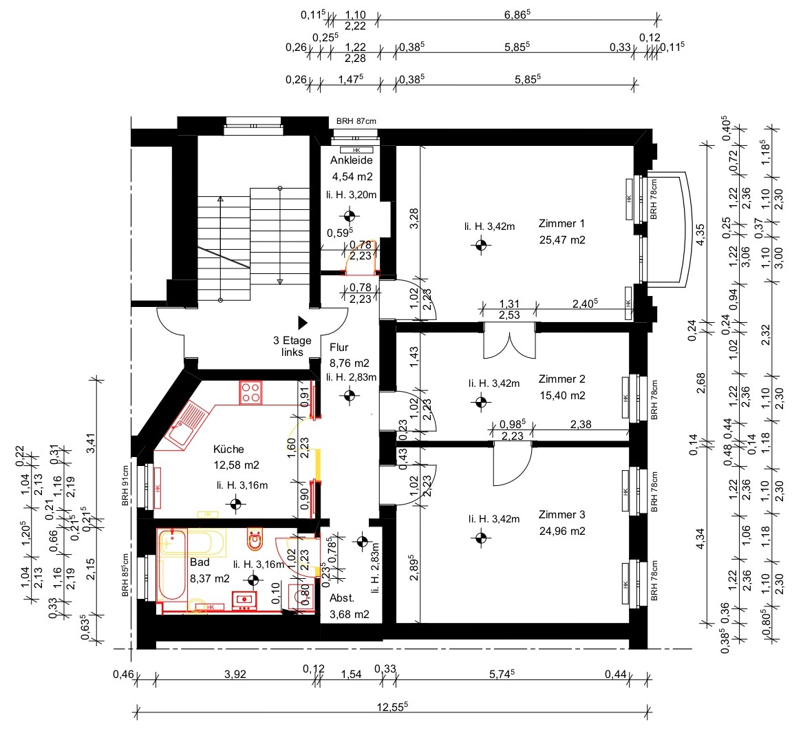 – 2 Schlafzimmer plus 1 halbes Zimmer