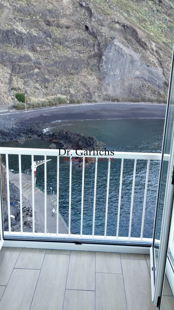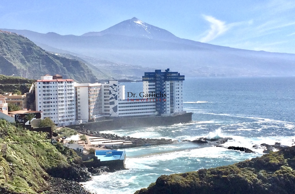Details: Oberste Etage – Aufzug – Doppelverglasung – 3 Balkone/Terrassen – Modernisierte Bäder – Offene, moderne Einbauküche – 1. Meereslinie – Westausrichtung mit herrlichen Sonnenuntergängen – Großes Meeresschwimmbecken und Strand direkt vor dem Haus – Meerblick – Teideblick.